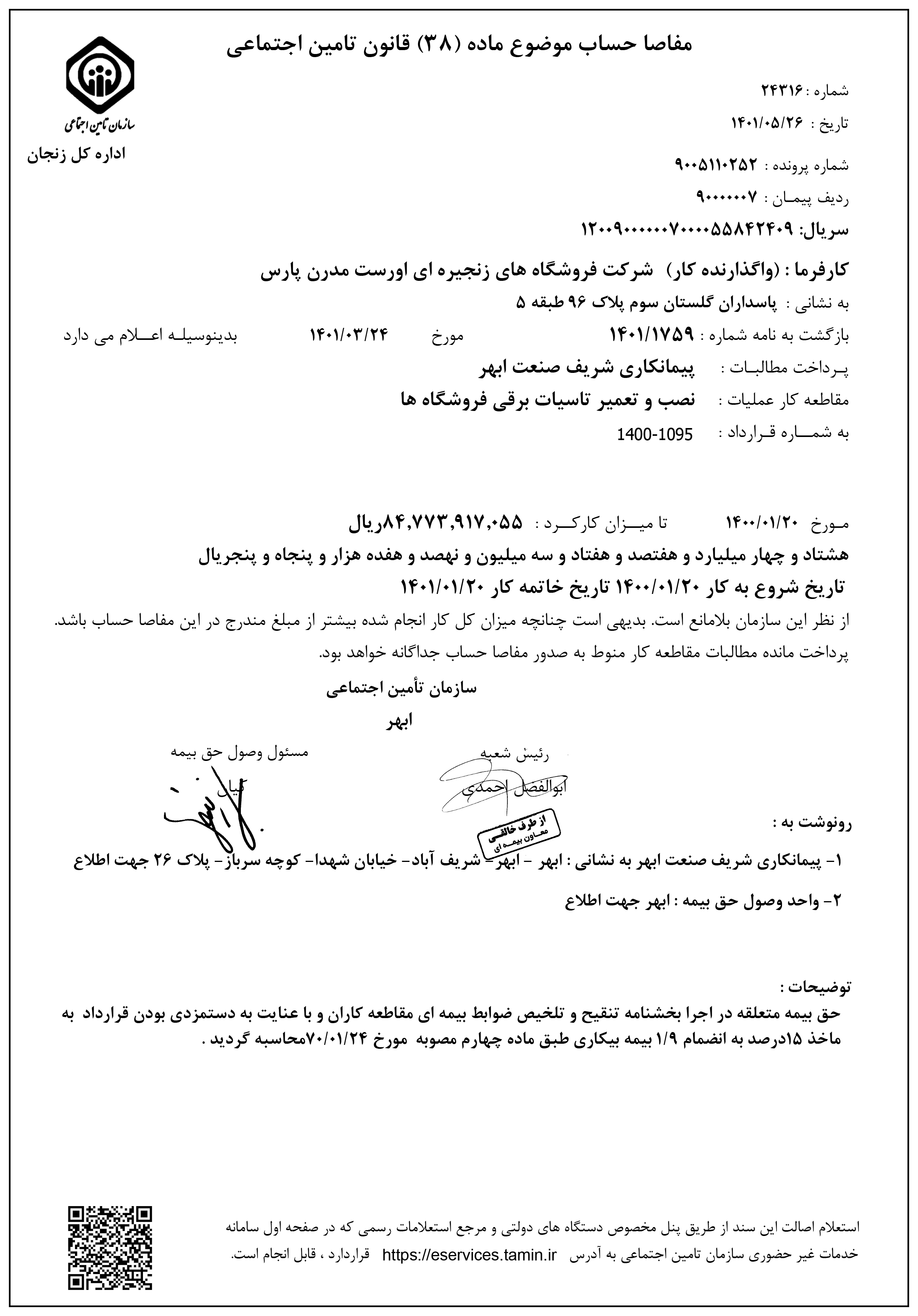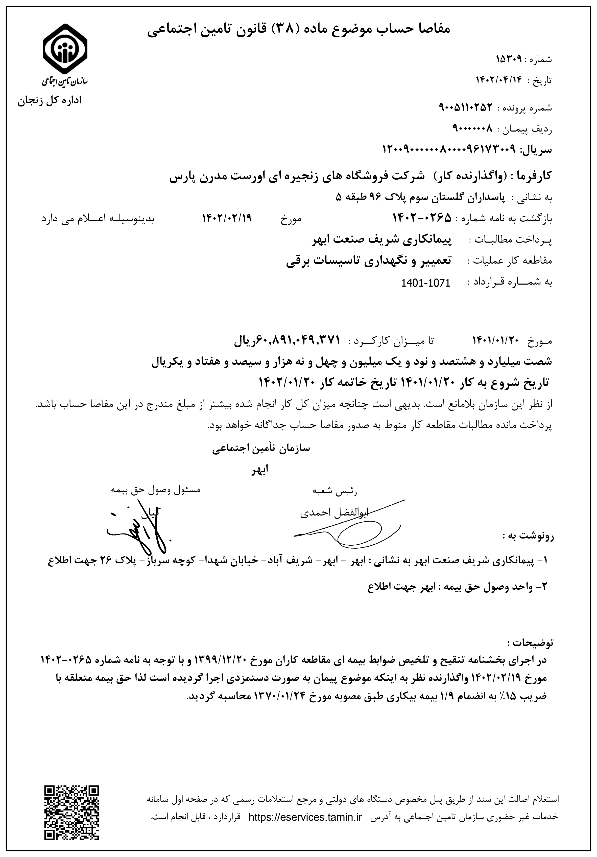 مفاصا حساب های شرکت شریف صنعت ابهر